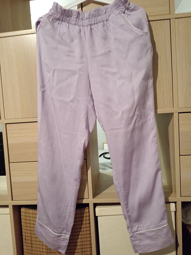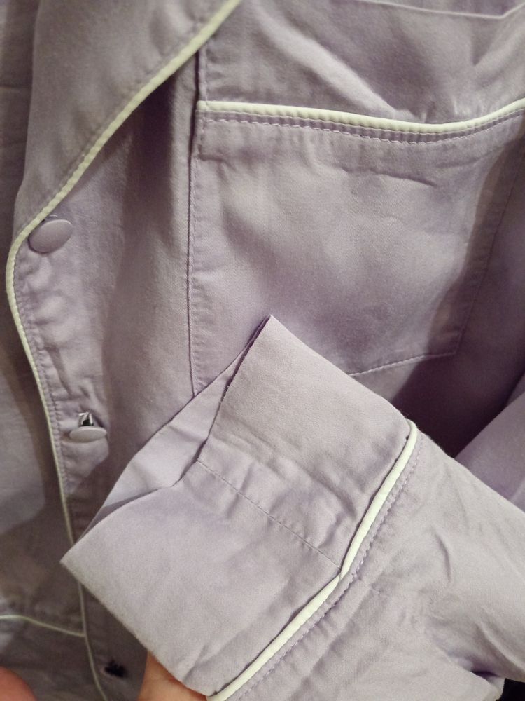 Пижама, рубашка и штаны, этикетки с составом нет, но по ощущениям хлопок, без синтетики, возможно немного вискозы, ткань шикарная, сатин, плотное гладкое плетение, очень нежная на ощупь, в новом состоянии, S-M, 3500 р.