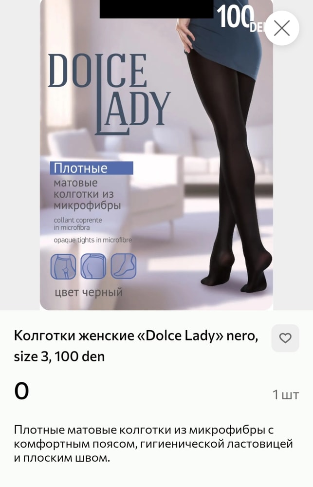 Колготки Dolce Lady, 100 дэн, плотные, матовые, микрофибра, цвет черный, размер 2-S, 450 руб.