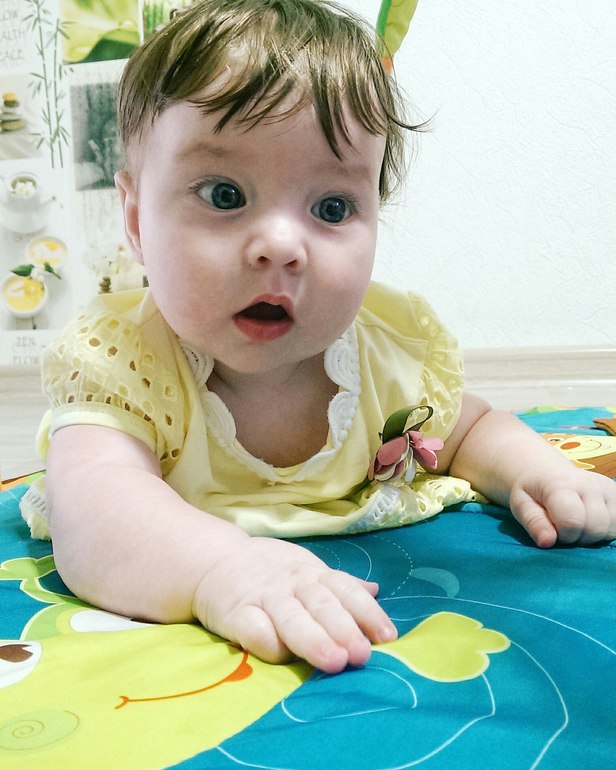 Ого!! Какая уже большая!!! А губы))))губы,)))) я своих за ноги тоже так таскаю))) поздравляем!! Как же быстро время летит№