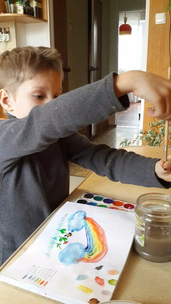 И наше первое задание для юных художников - это радуга! Попробуйте нарисовать ее используя только три основных цвета, а остальные - смешайте сами. Для многий деток это будет настоящее волшебство - сделать свой собственный цвет.