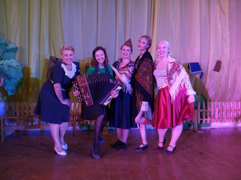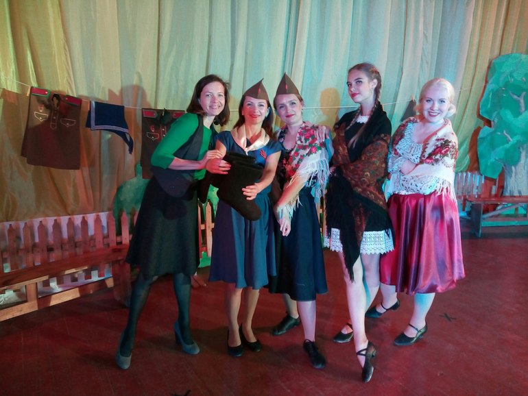 Потом я бегопобежалали на репетицию и начался концерт посвещенный 9 мая, где мы играли роль женщин 45го года, а так же танцевали (не знаю снимал ли кто то конуерт, это фото уже после)