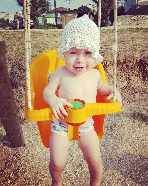 Впервые катались на качелях, потом купались наконец. Какое счастье было у ребенка. А потом еще и научила пить с трубочки. Так смешно)))