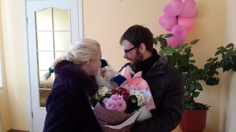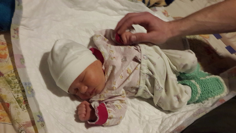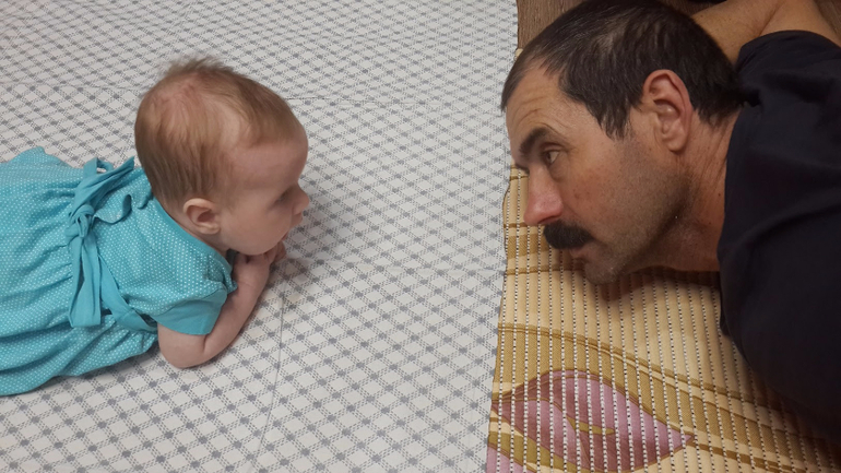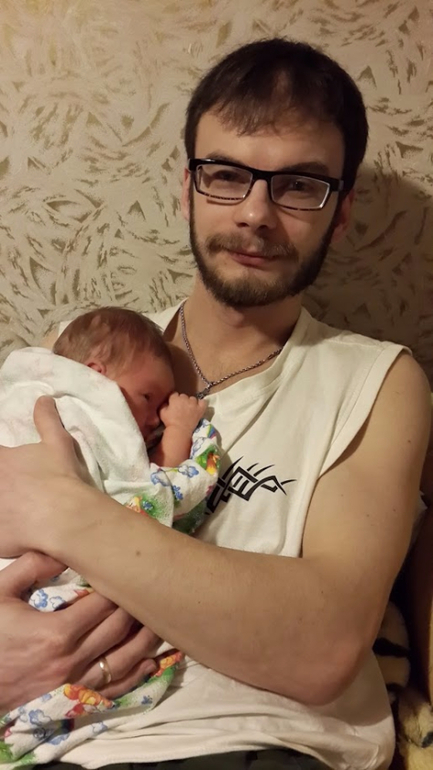 Папа впервые взял на ручки дома... Как же ему было страшно))