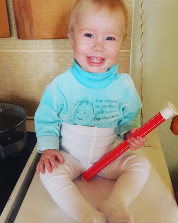 Ну вот вчера дала миску и ложку и мы типо готовили..