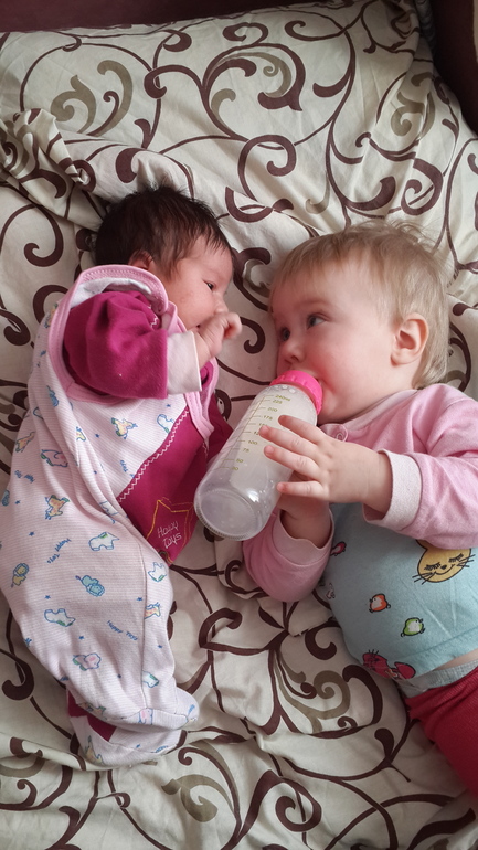 Лёля все же любит сестричку. Я наконец это поняла. Она отдает ей все свои любимые угрушки, гладит, качает если Лиля хоть немного начинает ворчать.