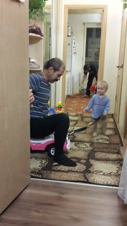 Когда все при деле. Папа убирает, дед развлекает... А мама наконец отдыхает
