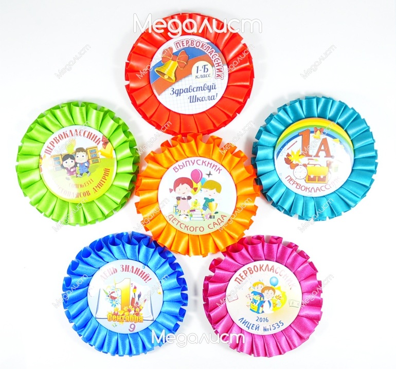 Наградные розеткиЯркая, красочная розетка на праздничное мероприятие: "Посвящение в Первоклассники», «День знаний», «1 сентября»,«Присвоено звание Первоклассник», «Праздник Азбуки», «Азбуку прочел», «Праздник Букваря», «Букварь прочел», «Выпускник 1 класса», «Выпускник начальной школы», «Выпускник Детского сада».