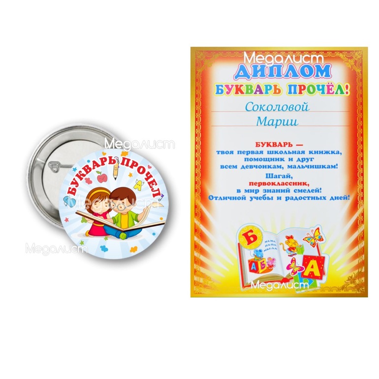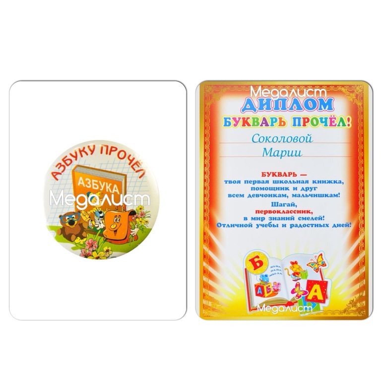 Наградной значок "Азбуку прочёл" поможет поздравить ваших детей с праздником "Азбуки".