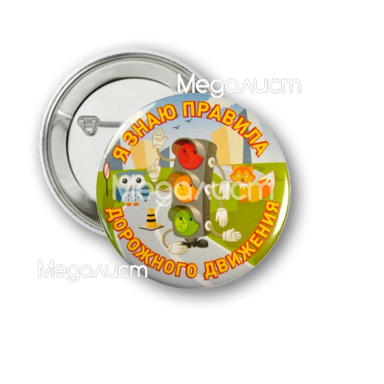 Яркий, красочный поощрительный значок "Я знаю правила дорожного движения" для всех участников викторины: "В стране дорожных знаков", "Светофорик", "Детям о дорожных знаках", "ПДД на дорогах города", "Три цвета Светофора", "Вместе по правилам дорожного движения".