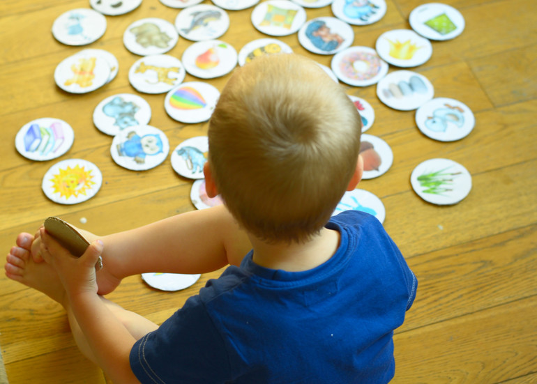 На обратной стороне карточек пишем буквы, берём карточку, и ищем предмет на эту букву. Мы с Максом за буквы ещё и не брались, сейчас я делаю акцент на восприятии букв на слух, попутно, думаю, запомним потихоньку.