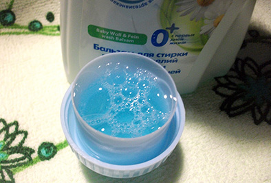 Бальзам полностью растворяется в воде, легко вспенивается и также легко смывается при полоскании. Температуру я высокую не задаю, 40 градусов достаточно, чтобы вещи хорошо отстирались и при этом не пострадали. То есть, не растянулись, не подсели, не скатались, если это шерсть.