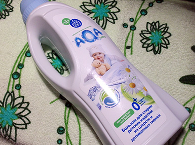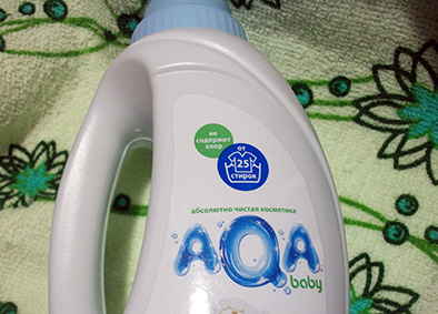 Делают Аква на основе очищенной артезианской воды, добавляют экстракты ромашки и оливы, которые защищают кожу при ручной стирке.