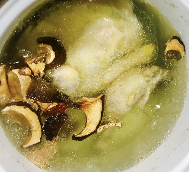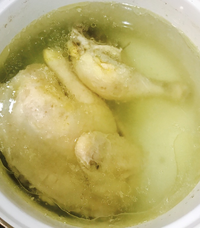 В это время курица остыла, разбираем ее руками в суп. Чтоб без костей и всего лишнего.