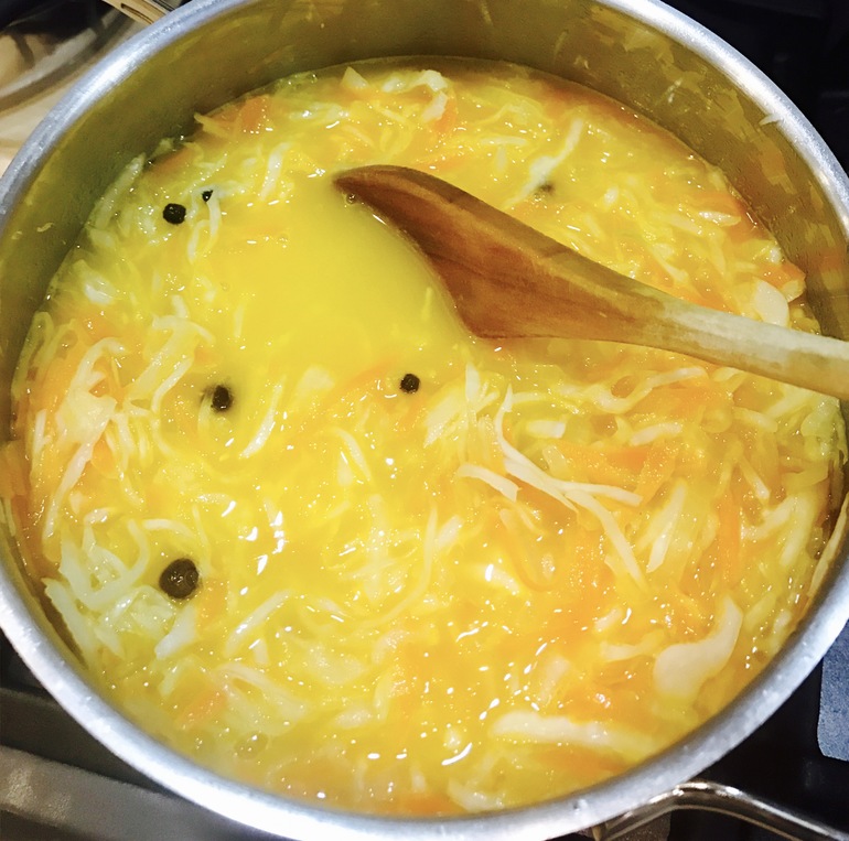 ( бульон ставим заранее, он должен быть почти готов к моменту постановки заготовки капусты).