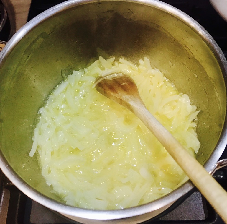 Как только обжарили все в кастрюльке, ливаните туда несколько половников бульона.