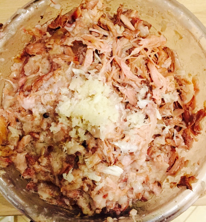 Вот оно. И в него прям выдавили чеснокодавкой пол-головки чесноку свежего. Пенремешали.