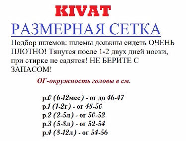 Шлемы и шапочки Киват/Kivat(со склада поставщика выкупы)