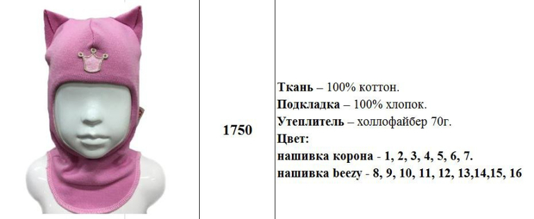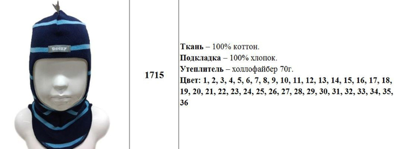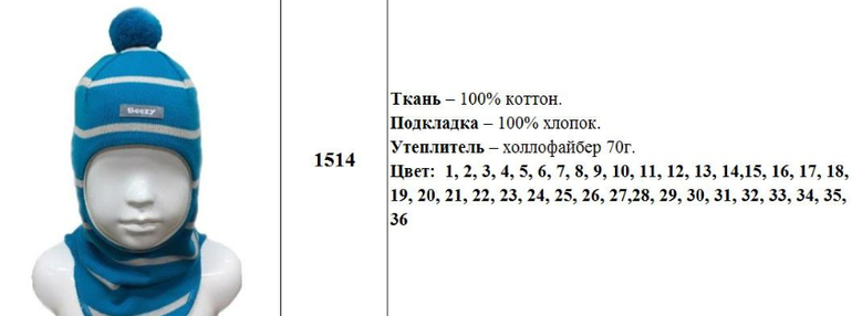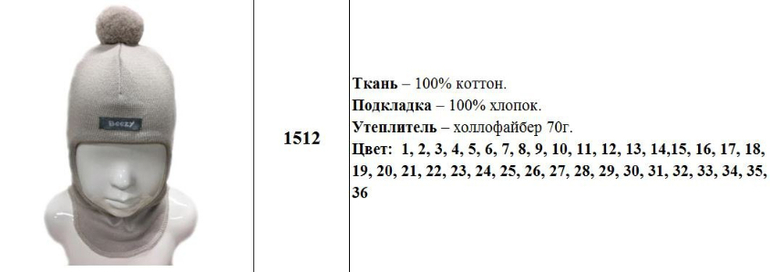 Ткань - 100% коттон. Подкладка - 100% хлопок. Утеплитель - холлофайбер 70г. Данная модель есть в расцветке 4, как на фото. Есть с 1 помпоном, а есть с 2-мя, как на фото.