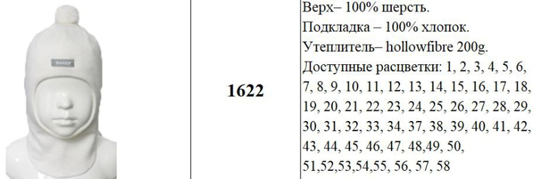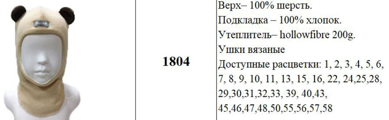 Верх- 100% шерсть. Подкладка - 100% хлопок. Утеплитель- hollowfibre 200g. Ушки вязаные Доступные расцветки: 1, 2, 3, 4, 5, 6, 7, 8, 9, 10, 11, 13, 15, 16, 22, 24,25,28, 29,30,31,32,33, 39, 40,43, 45,46,47,48,50,55,56,57,58