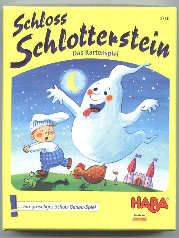 Хочу вам рассказать об одной замечательной игре для развития памяти производителя Haba. Называется игра "Замок с привидениями" и выглядит коробка вот так (у этого производителя есть еще игры с подобным названием).