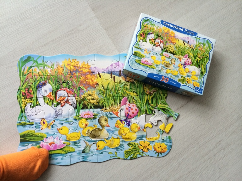 8. Пазлы - в последнее время я их не предлагаю во время занятий, поскольку Даша их собирает в большом количестве в течение дня. Интерес к ним огромный. Сама может собрать из 20 деталей, с моей помощью и 30 соберет. Вообщем радует меня этим очень. Я ж пазломан заядлый) Вот, например, такой пазл собираем: