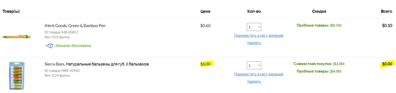 Довольно редко, но периодически бывают на айхербе то ли аттракционы невиданной щедрости, то ли "глюки", когда можно купить какой-то товар бесплатно либо за 0.02$ (при базовой стоимости товара 12-19$). Чтобы найти такие акции, рекомендую перед отправлением заказа проверить все категории: