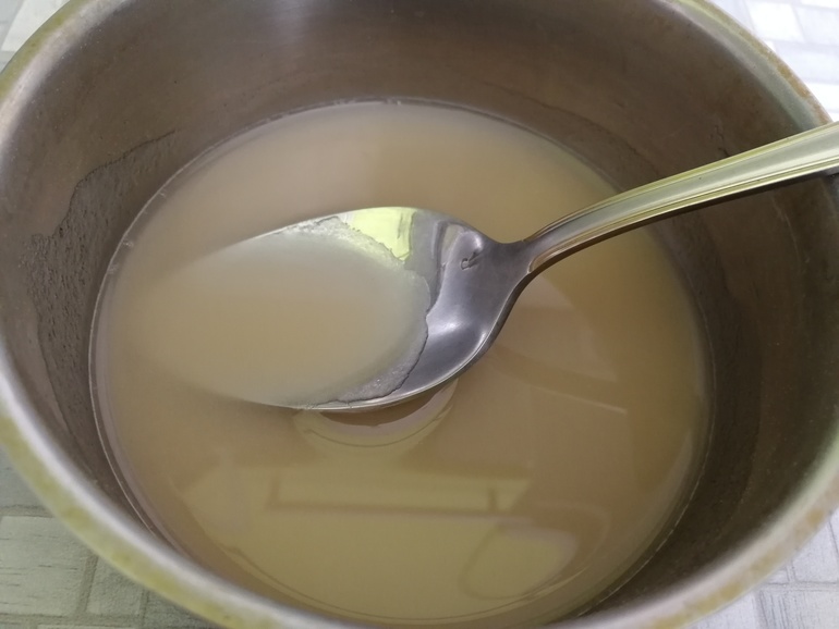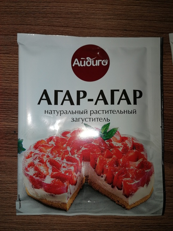 Когда клубника разморозилась, залила 10 г (1 ст.л.) агар-агара половиной стакана холодной воды: