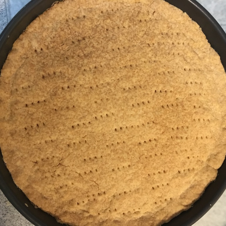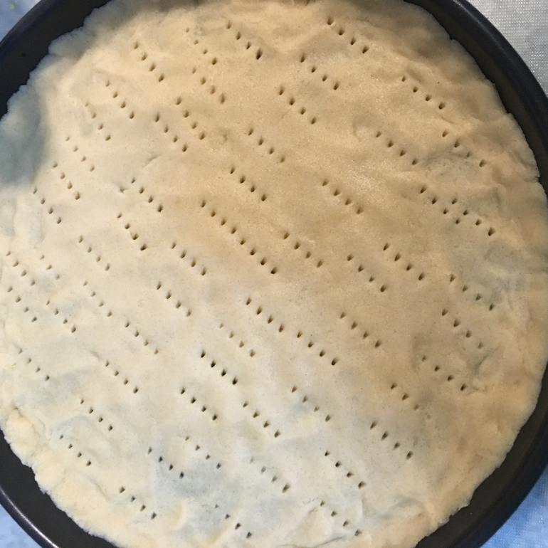 Тесто в форму, от души потыкать вилкой и в разогретую духовку 220 гр на 10 минут.