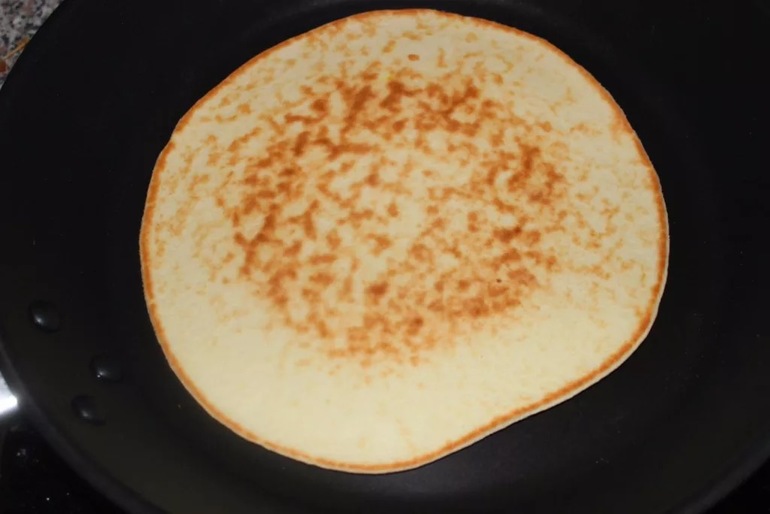 Коржи выпекаем на среднем огне по 2 минуты с каждой стороны