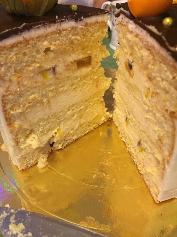 Дополнительно я пропитала коржи апельсиновым сиропом и проложила коржи лимонными дольками:) Снаружи крем-чиз.