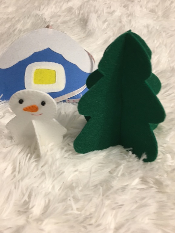 Заглянув в домик, можно найти елку, без которой не может быть праздника, и снеговик, который поможет нарядить елочку. Их нужно собрать.