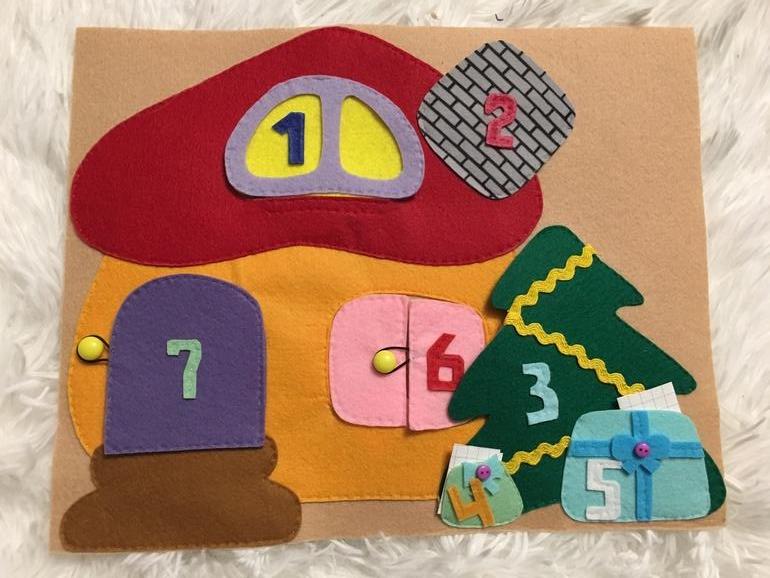 Домик-развивашка:мелкая моторика(пуговки, липучки), изучение цифр.