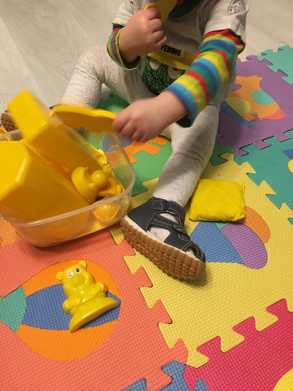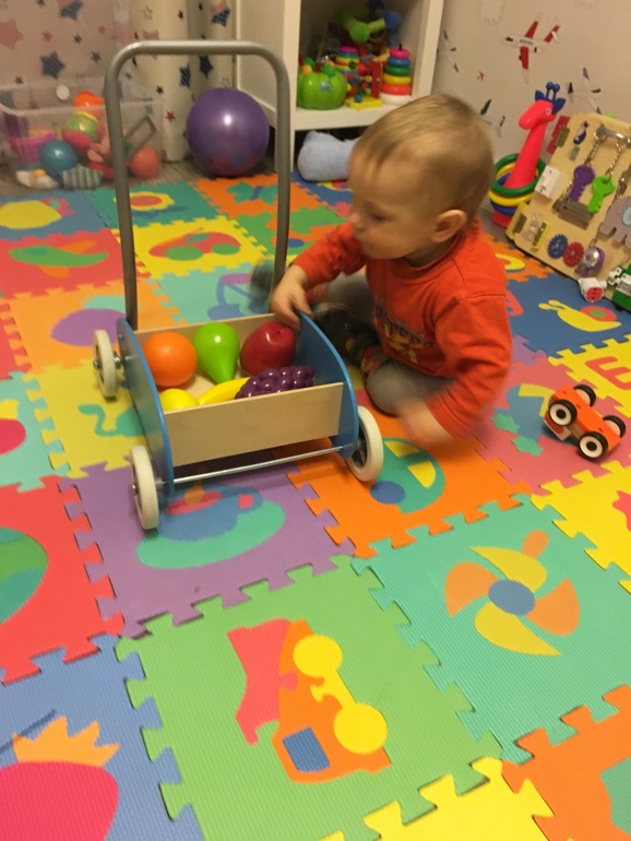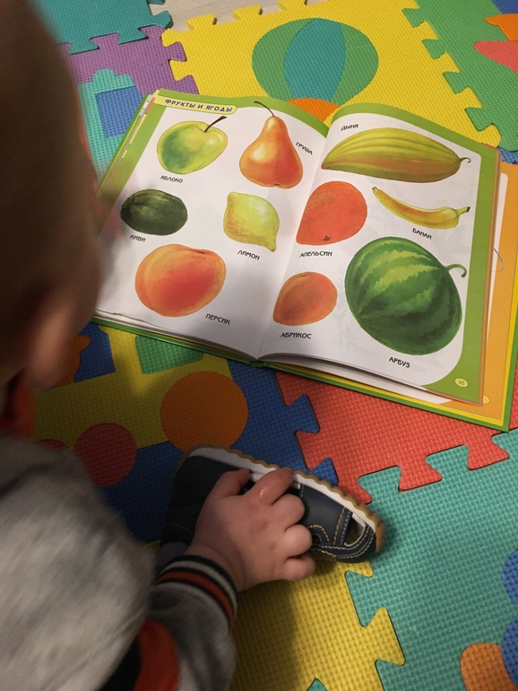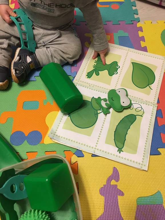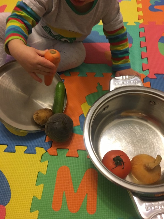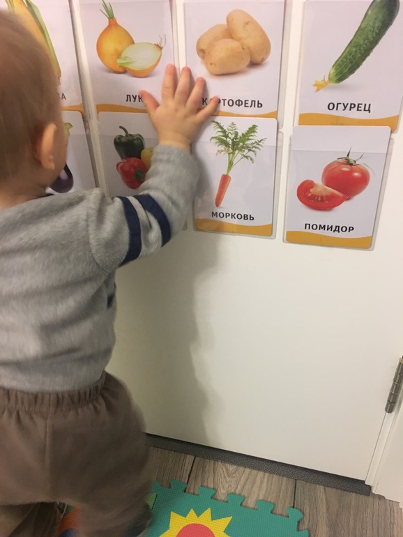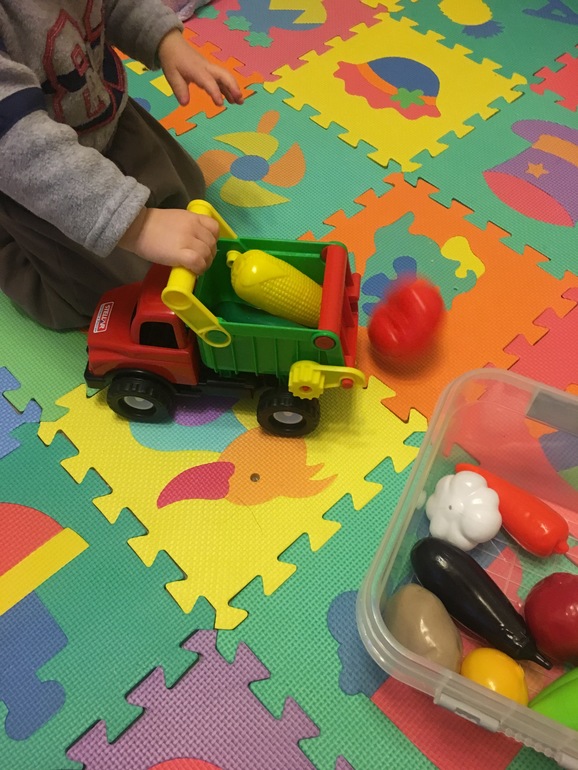 и игры с предметами. Клали каждый овощ в грузовик и катали по комнате)