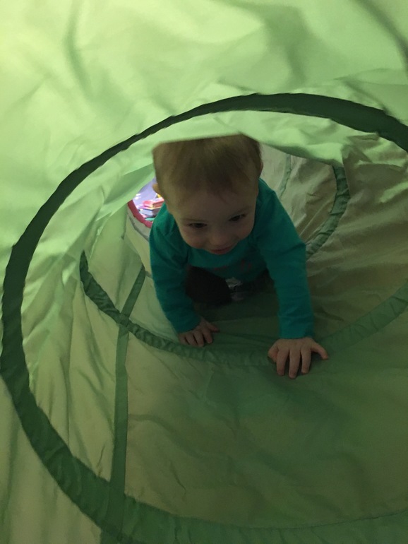 Физическое развитие. Новое упражнение-ползание под препятствием. Но можно сказать,что его сын и так выполняет каждый день, очень любит сам закатить машинку под кровать и по-пластунски за ней ползти). Сегодня целенаправленно положила тоннель на середину комнаты,раз 30 туда-сюда пролез)