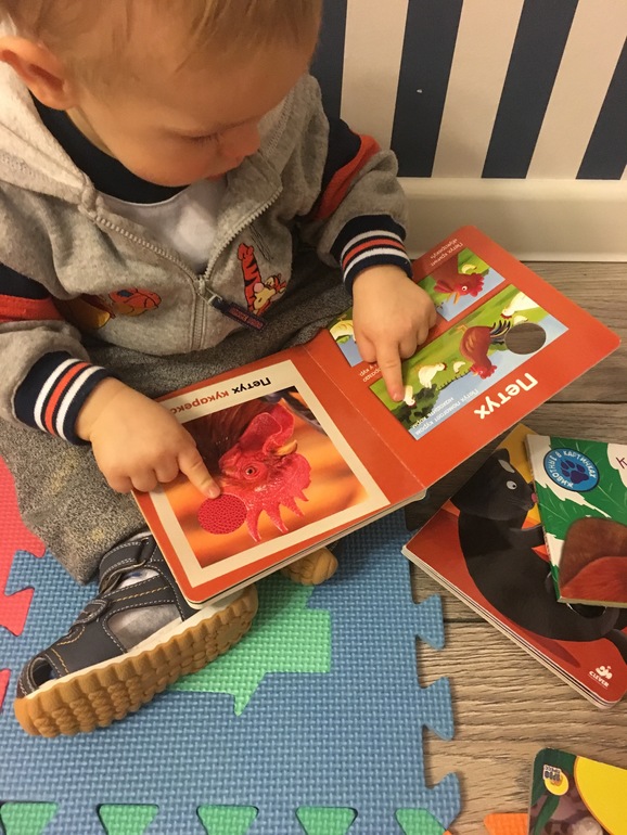 Любимая книжка из набора книг со вставками из различных материалов, имитирующих шкуры животных.