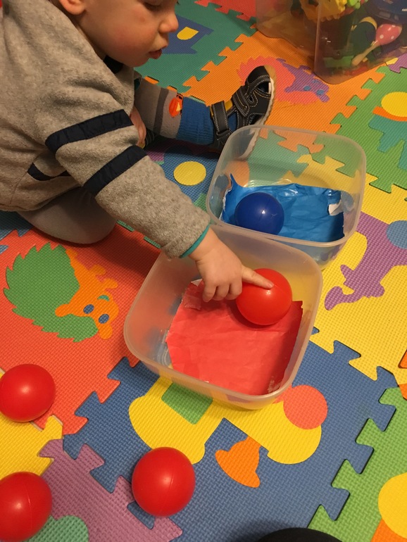 Цвет-раскладываем по контейнерам шарики красного и синего цвета.