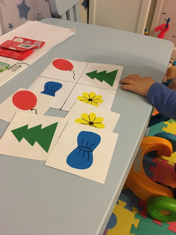 А) цвет - сортировка мозаики по коробочкам (красный, синий, желтый)