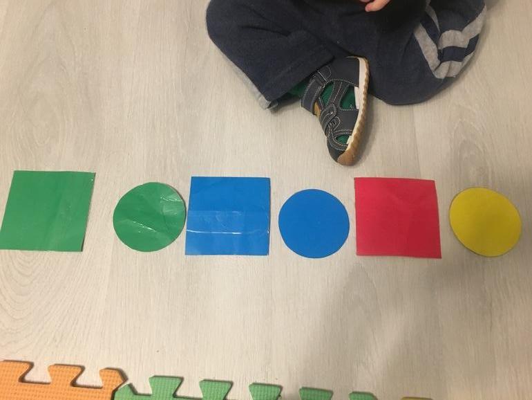 Цвет и форма-сортировка фигур (круг, квадрат, теругольник 3-х цветов). Сначала по цвету, потом по форме.