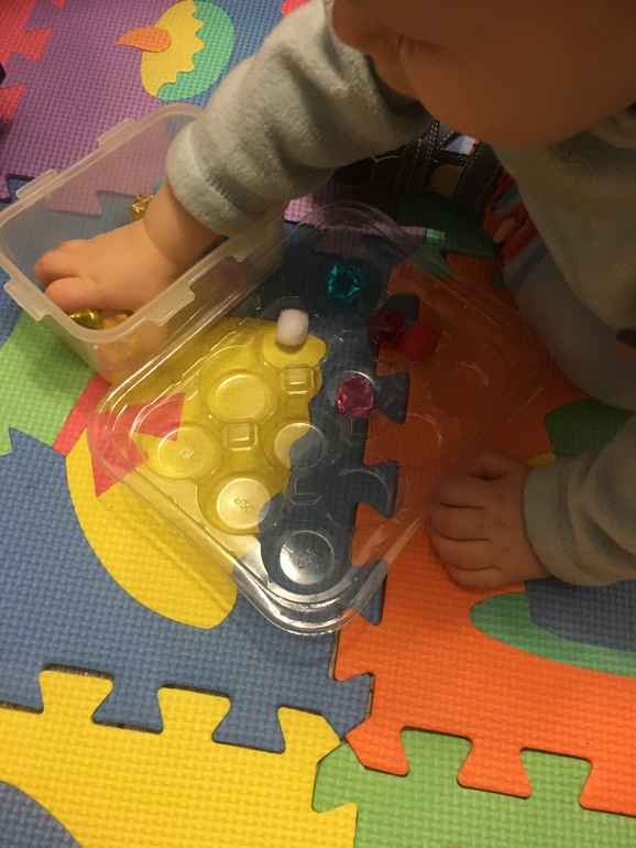 Игры Монтессори: "домики". Раскладываем камушки. помпончики по ячейкам.