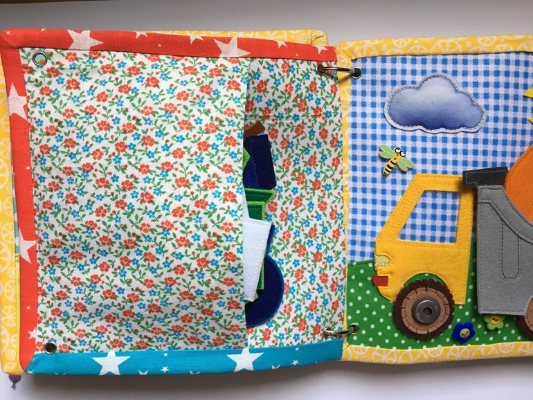Книга на кольцах. Мне так удобнее давать ребенку играть (по одному листу). 10 сюжетов и много съемных деталей.