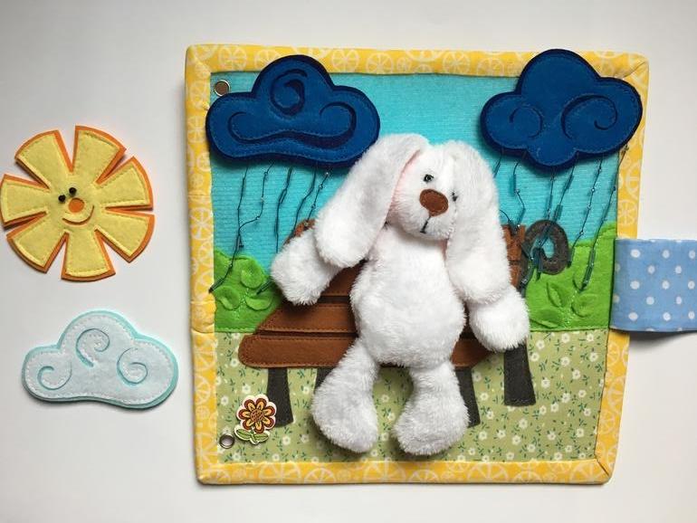 - погода: солнце, дождь, тучи, облака. Съемные на липучке. Можно убрать в карман (за скамейку)