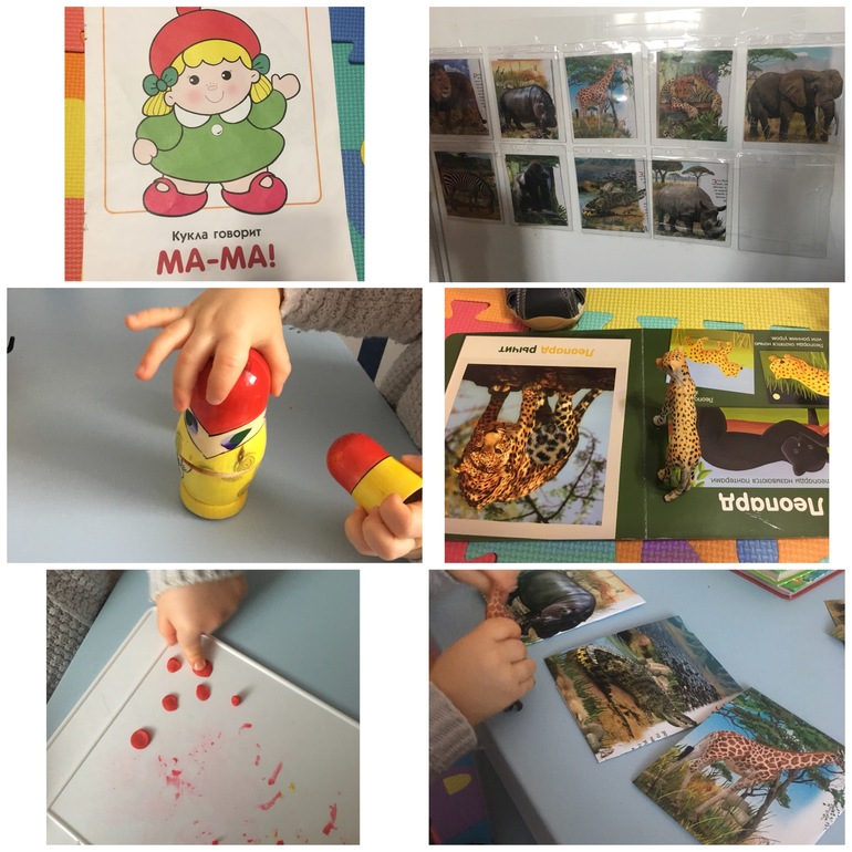 - окружающий мир: животные Африки. Показываю карточки, называю, кто изображен. Потом идем вешать картинки, я называю картинку-ребенок дает нужную. Игры с фигурками: смотрим картинки в книга, ищем соответствующих животных-фигурок