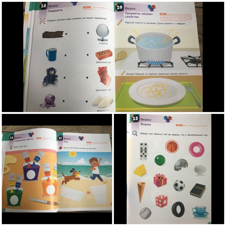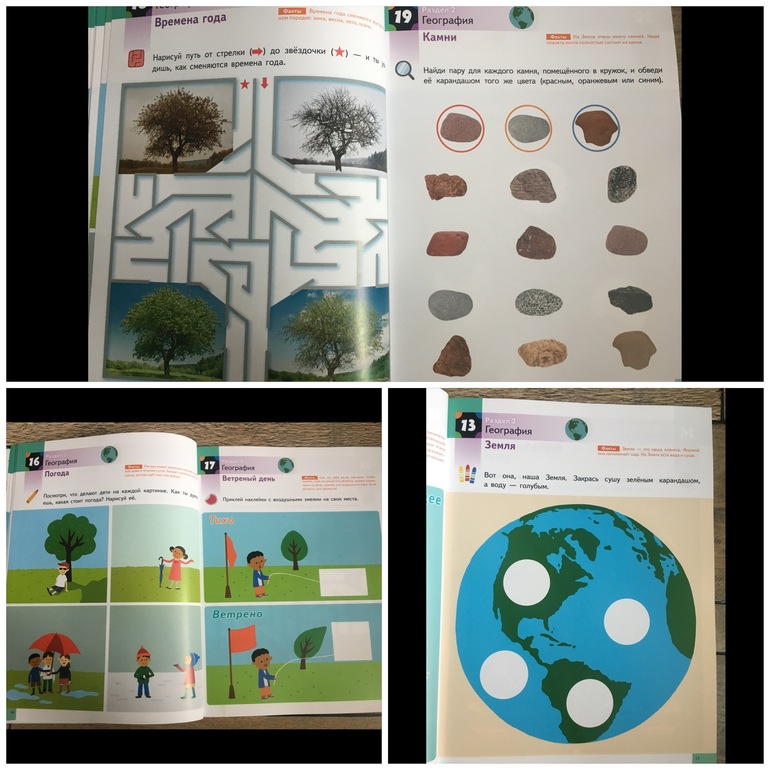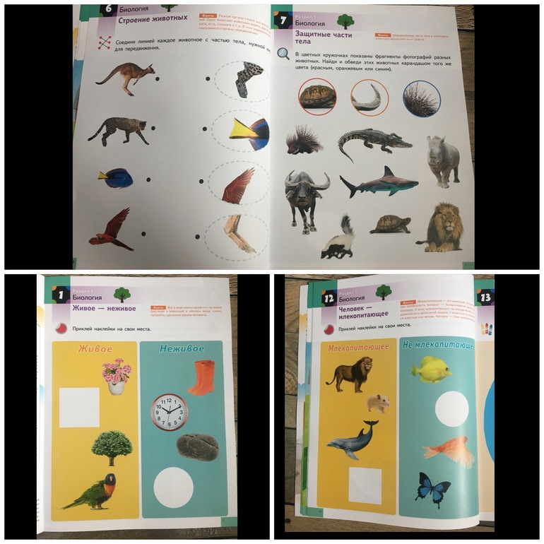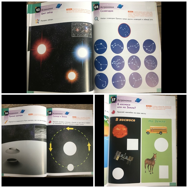 Яркая тетрадь знакомит с миром естественных наук. В книге 4 раздела с заданиями по следующим наукам: биология, география, физика, астрономия. Кроме наклеек в тетради есть задания нарисовать, раскрасить, лабиринты. К каждому заданию даются небольшая информация о явлениях, предметах, животных и т.д.