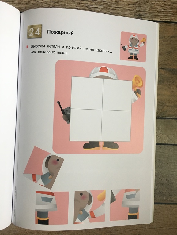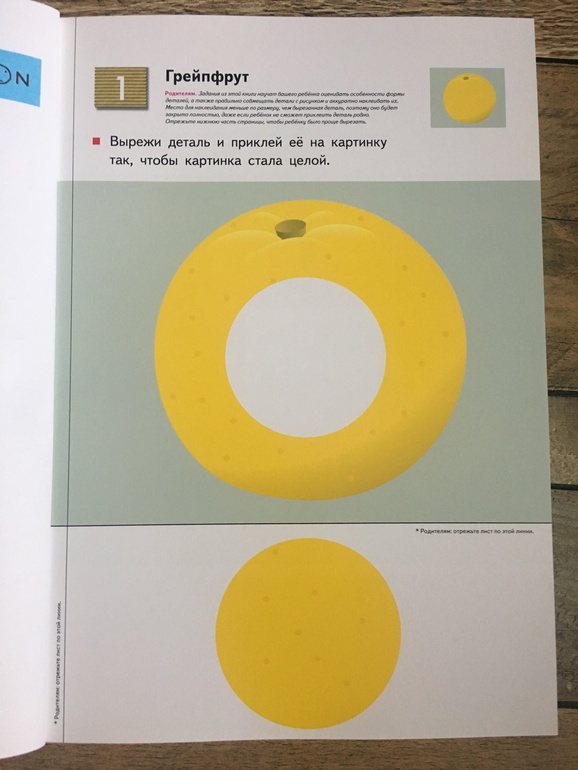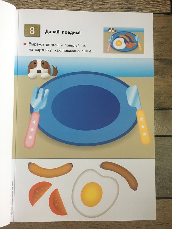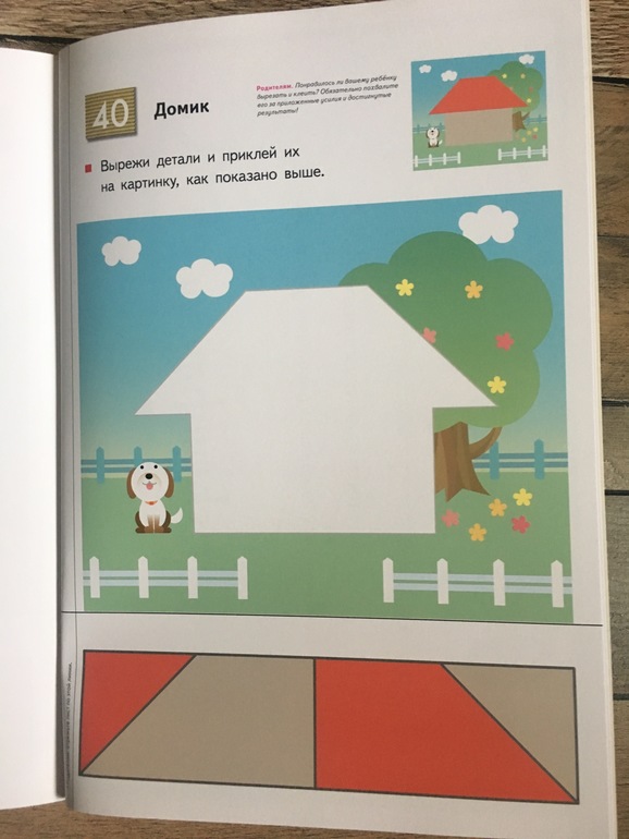 40 плотных страниц с яркими иллюстрациями и интересными заданиями от простого к сложному. Каждое содержит рекомендации для родителей. Учит ребенка вырезать и наклеивать детали, оценивать форму, цвет, содержит много логических заданий.
