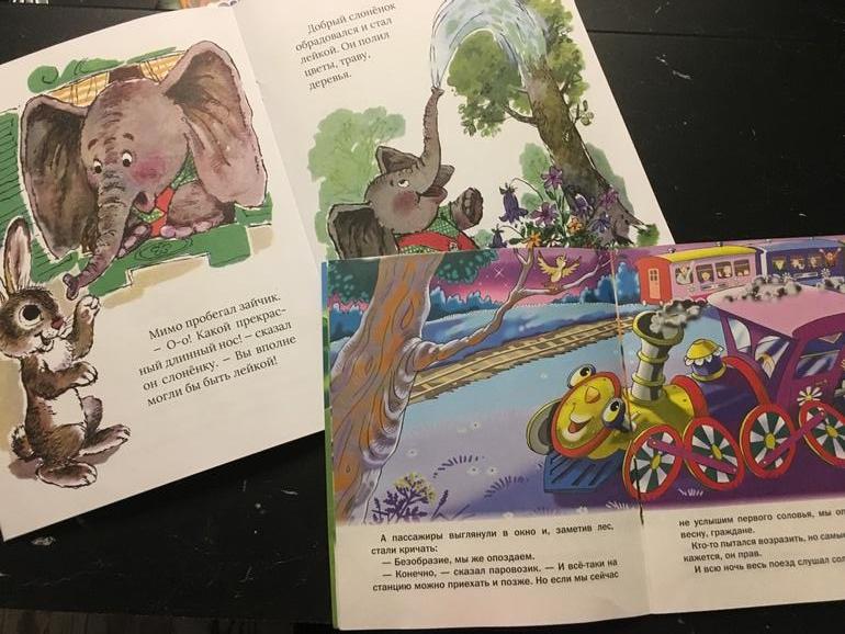 Еще 2 книжечки Г. Цыферова. Я их не люблю из-за текста, но сын обожает. Картинки яркие, паровозы вообще любимая игрушка. Скорее всего из-за этого мы их и читаем.