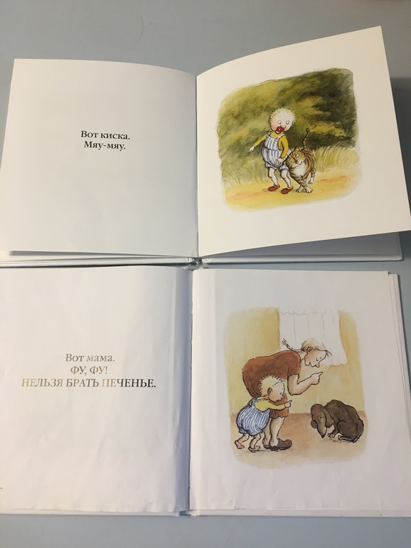 У нас всего их 2. Хотели купить больше, но сейчас уже думаю перерастаем эти книги. Мне, как и всем знакомым родителям, не особо нравятся эти книги, но дети их обожают. Текст совсем простой. 1-3 лаконичных предложения, который дублируется картинкой
