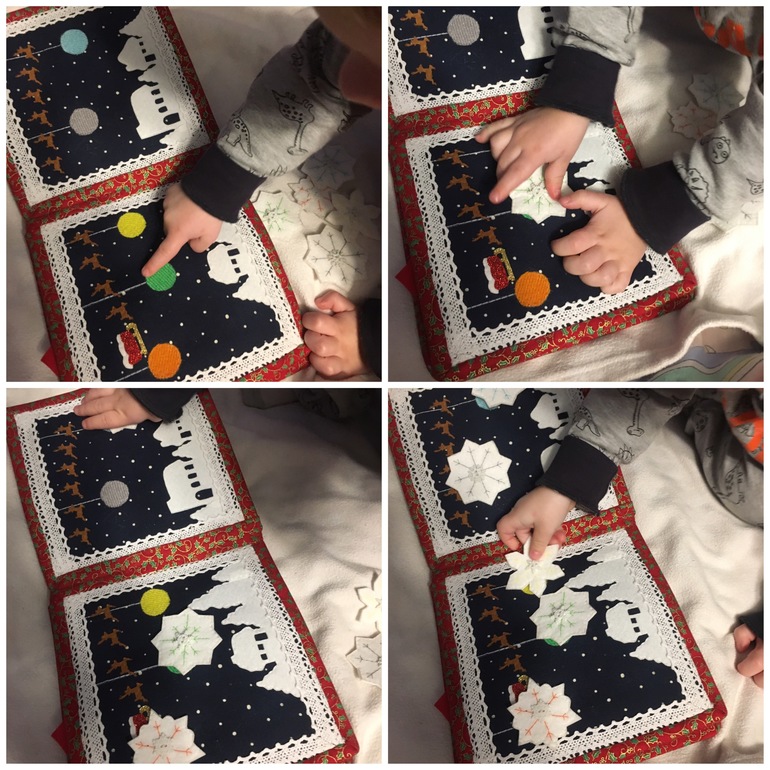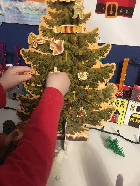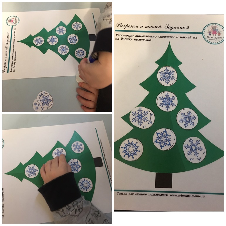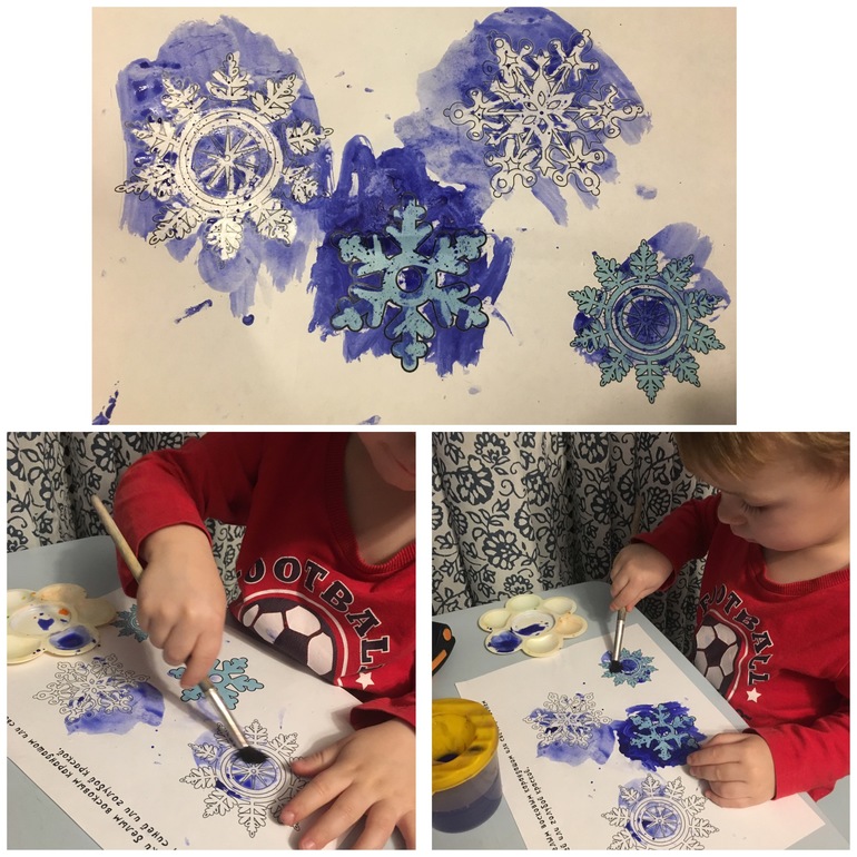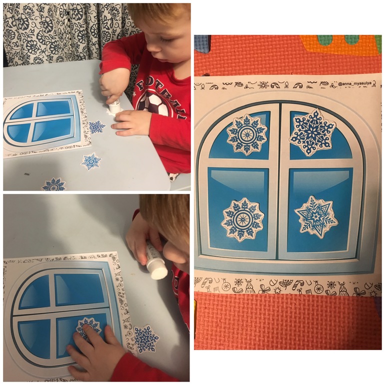 Во второй половине Ваня очень хорошо справился с довольно сложным, как мне кажется заданием, развесить снежинки по образцу