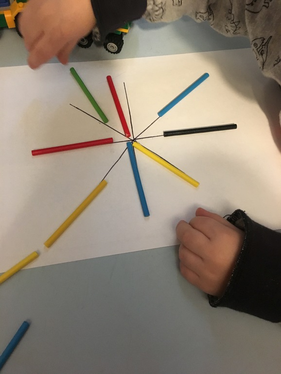 Выкладываем снежинку счетными палочками по схеме