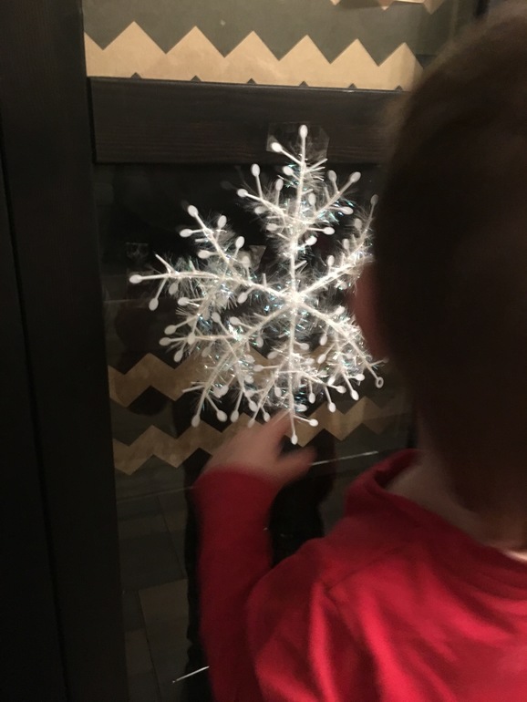 Вместе с Ваней развесили снежинки по дому