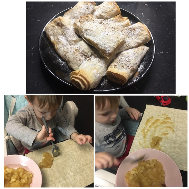 Вечером вместе приготовили для папы зимний ленивый штрудель с яблоками и корицей